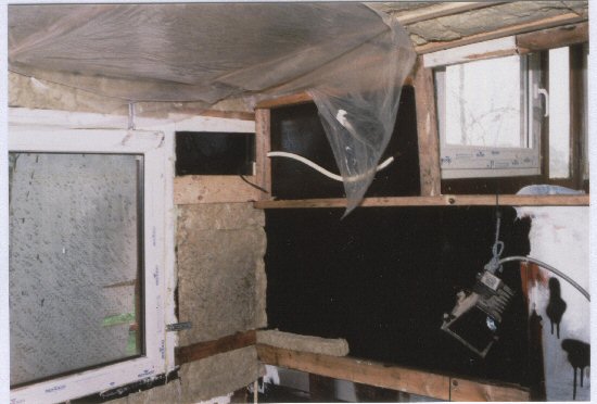 voor de hydraulische besturing. De ramen zijn nog dichtgetimmerd. |