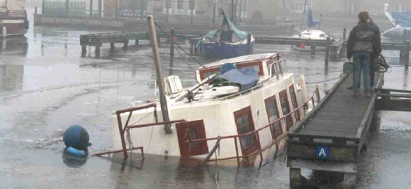 langzaamaan werd dat een flinke stroom en zo liep het schip vol water.
