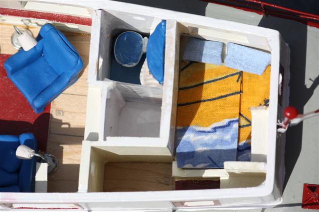 stuurboord zit al in de stuurhut. De bedden voor in het roefje