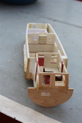 zie je dat de romp al wat wordt. Hannes heeft met stukjes hout
